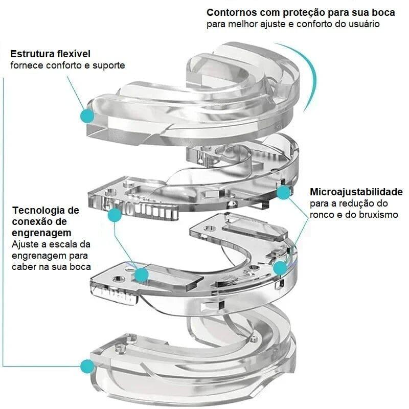 Protetor bucal projetado para reduzir o bruxismo, ronco e apneia do sono, garantindo uma noite de sono mais tranquila.