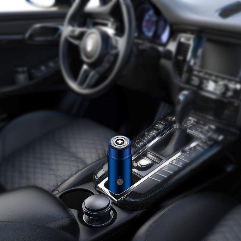 Barbeador portátil com bateria recarregável, ideal para um barbear preciso e confortável em qualquer lugar.